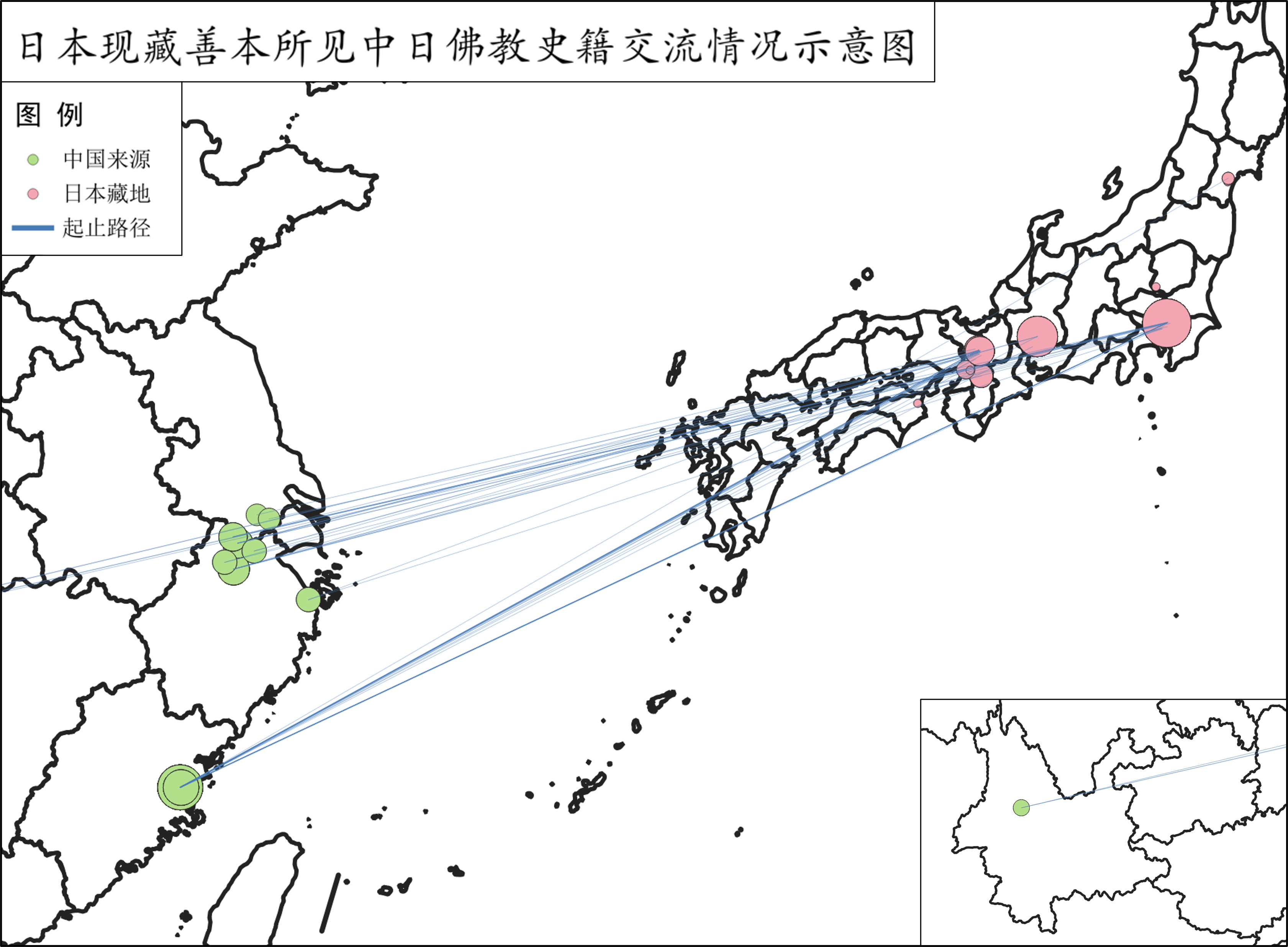 日藏善本所见中日佛教史籍传播信息网络示意图