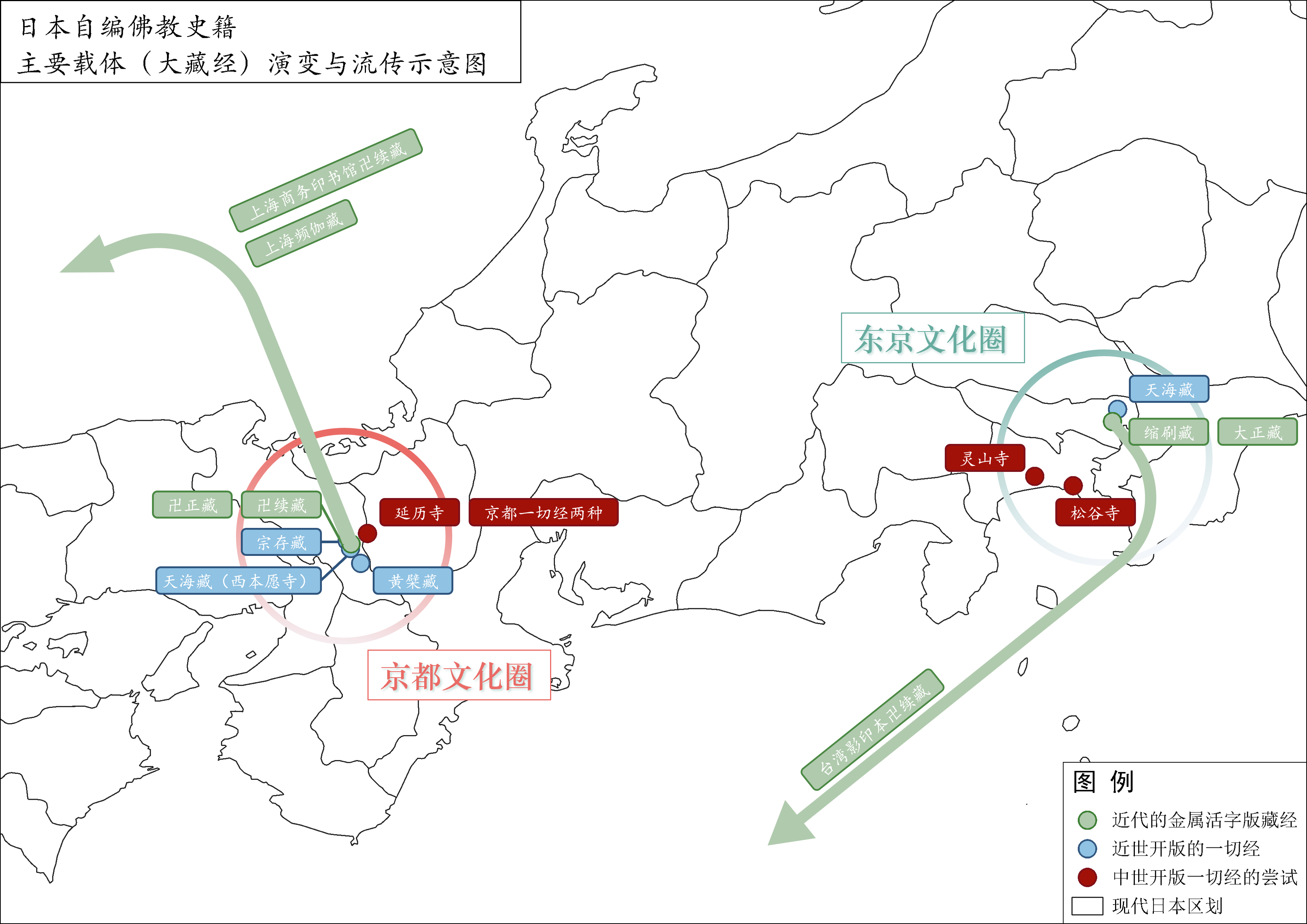 日本自编佛教史籍主要载体大藏经演变与流传示意图